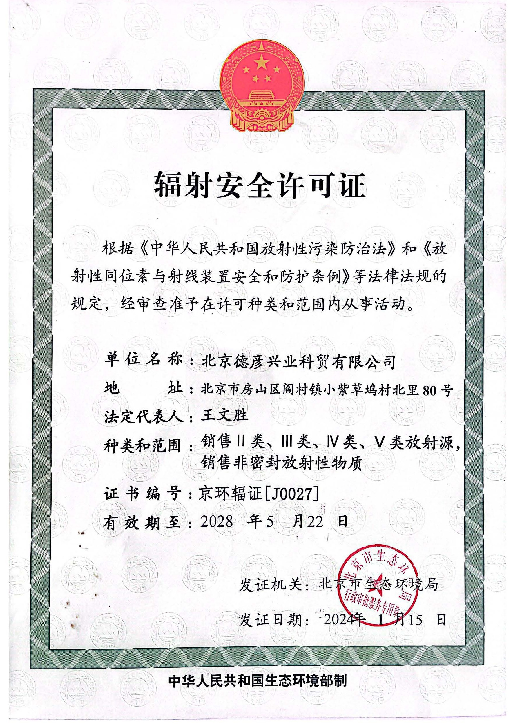 北京德彦兴业科贸有限公司成立于2003年7月,是一家专业从事放射性同位素相关贸易及服务的进出口公司。总部位于北京市房山区,占地面积6666平方米,办公区域达1500平方米。主要从事放射性同位素采购、批文办理、报关清关、放射性危险品运输、旧源退运等一站式服务,也承接其中任一环节的独立业务。